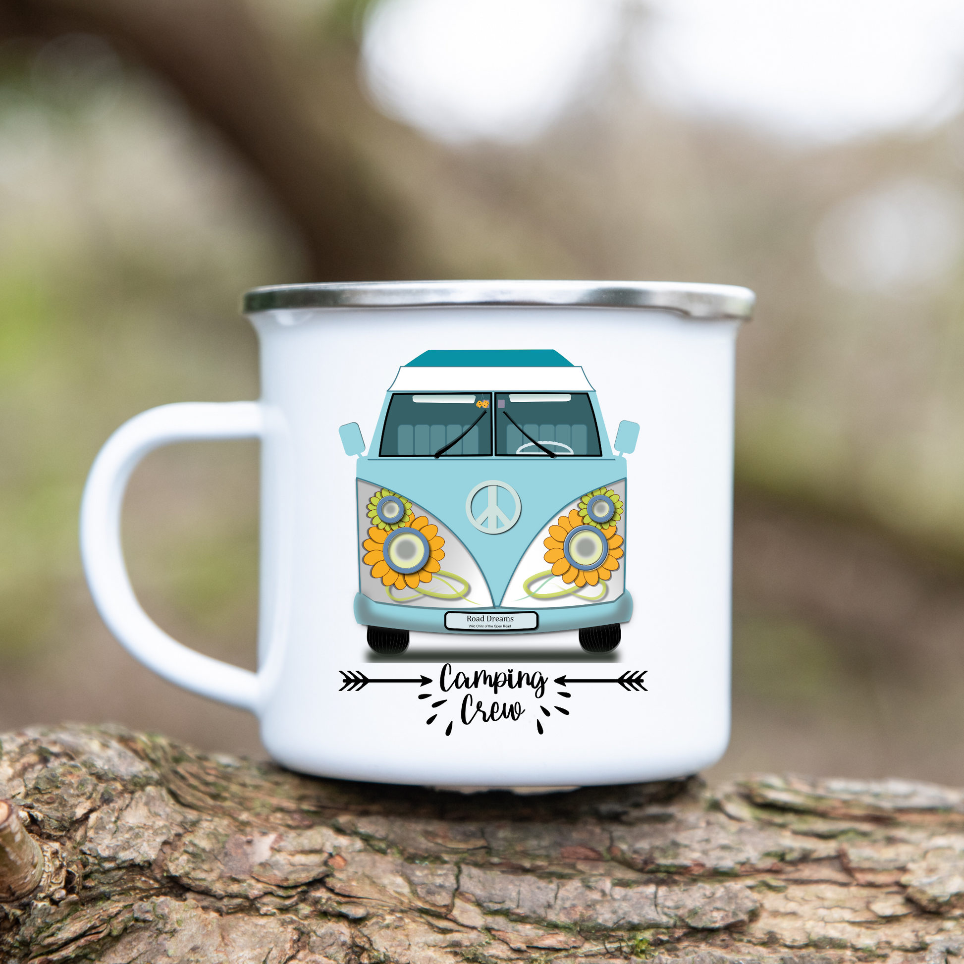 Camping Crew, Bulli, Van, Vanlife - Emaille Tasse (Silber)