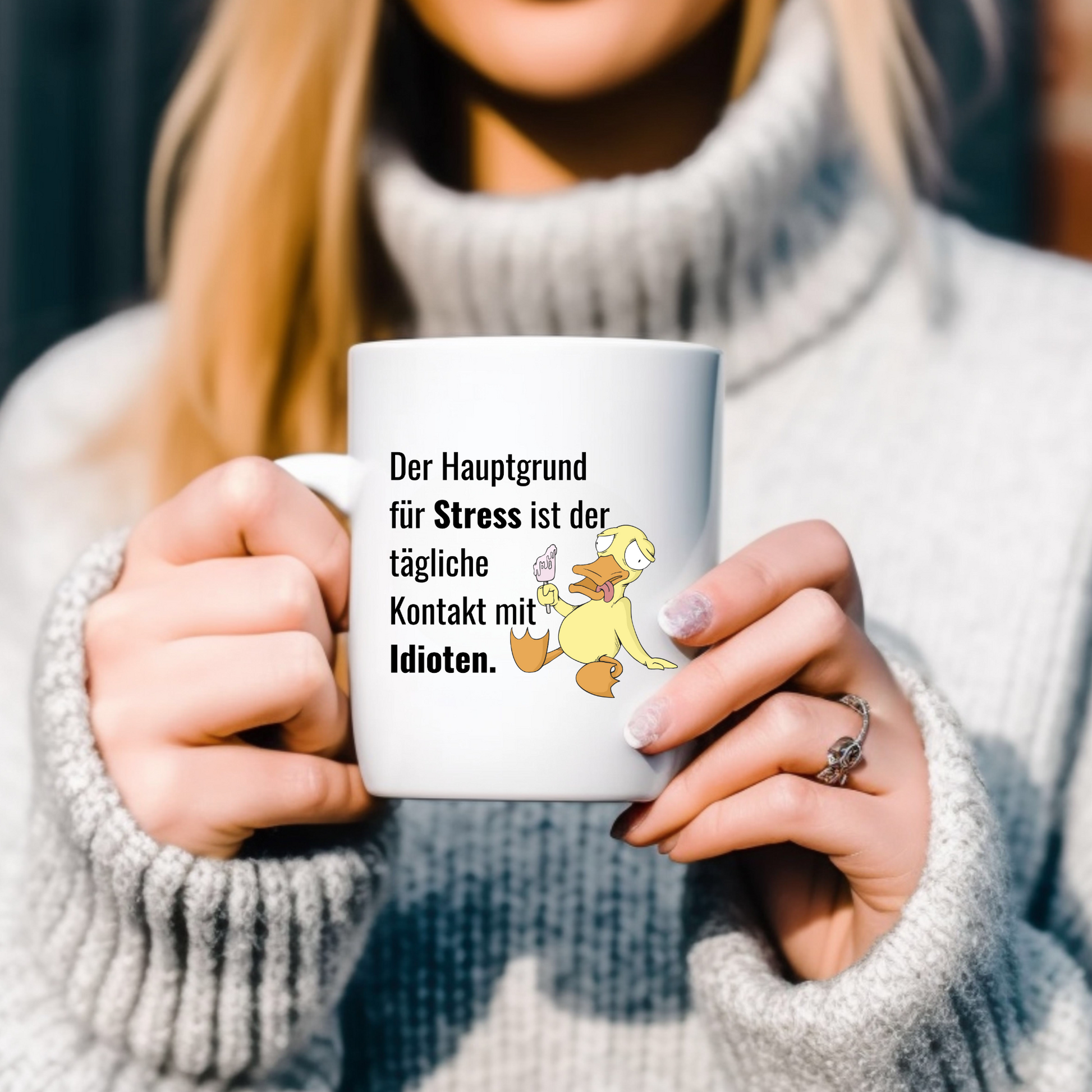 Der Hauptgrund für Stress ist der tägliche Kontakt mit Idioten - Tasse glossy