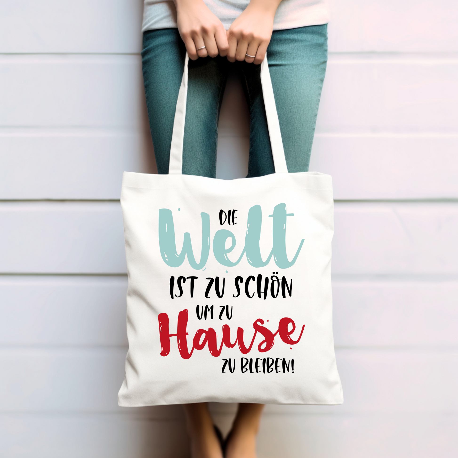 Die Welt ist zu schön um zuhause zu bleiben - Baumwolltasche