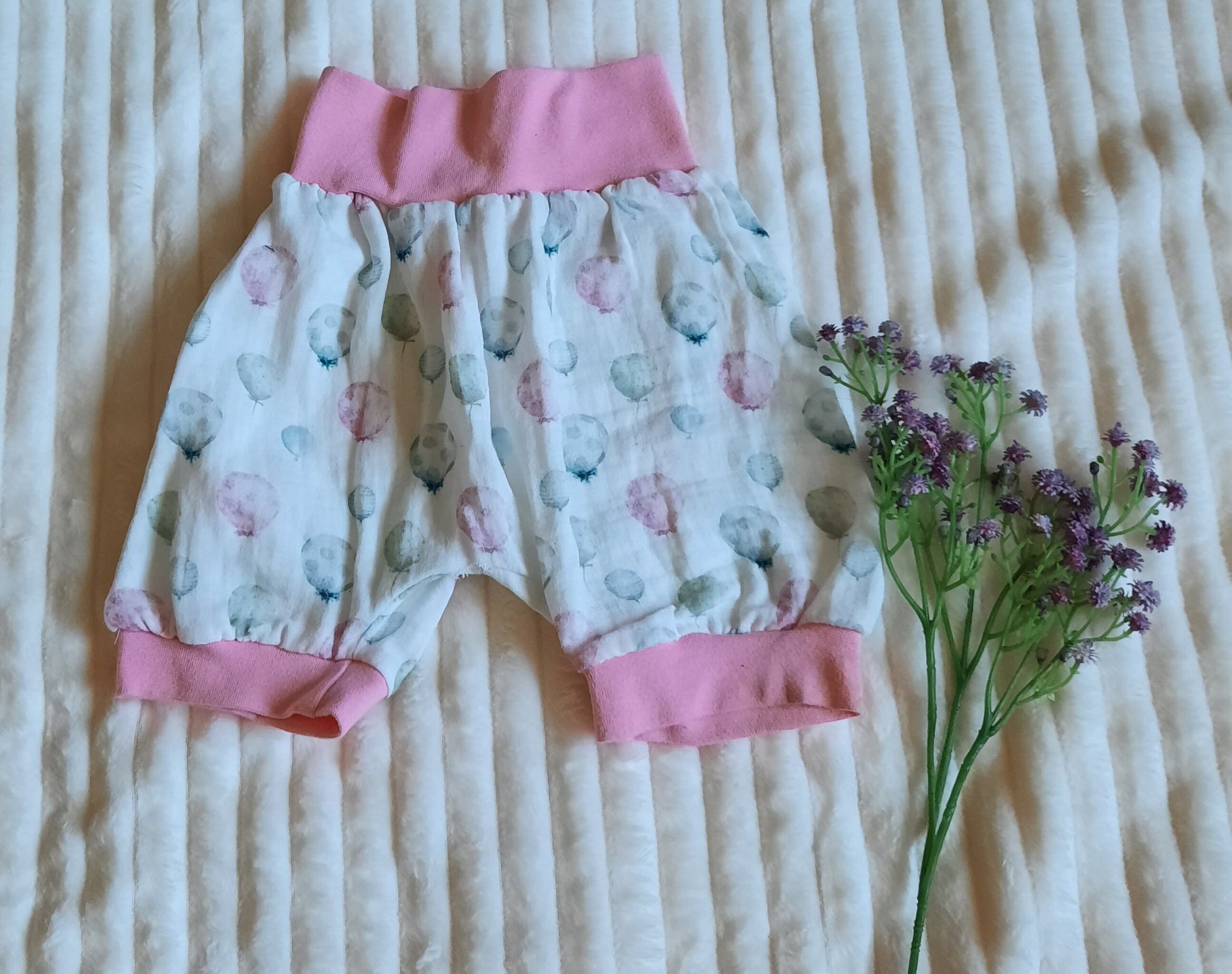 Gr. 80-92 Pumphose Musselin weiß, rosa, Luftballons