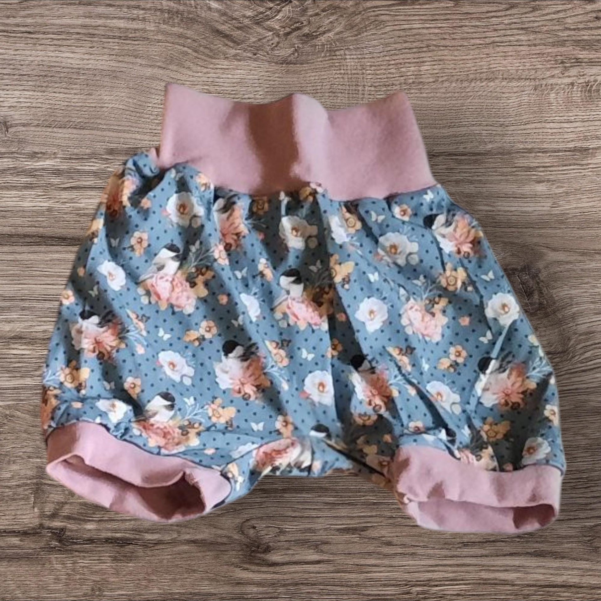 Größe 110/116, Kurze Hose, Pumphose, Blumen, Vögel