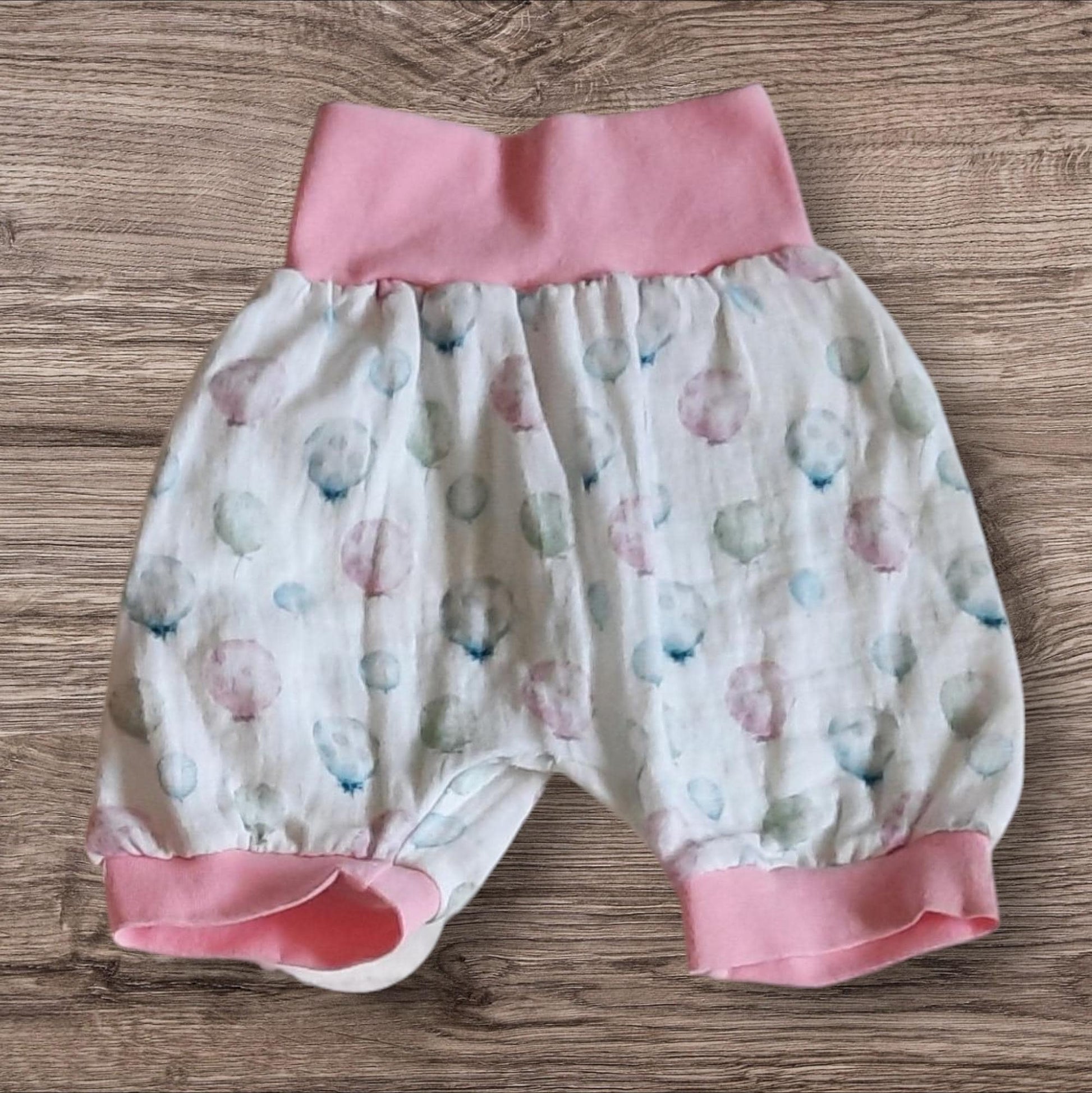 Größe 80/92, Kurze Hose, Pumphose, Musselin, weiß, Roda, Luftballons