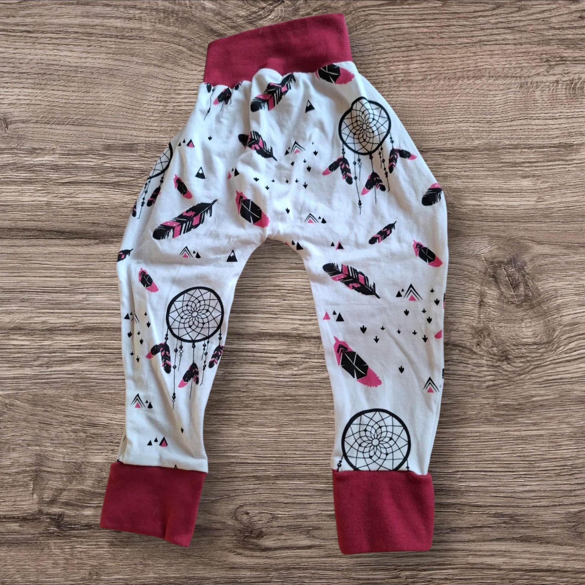 Größe 98/104 Pumphose, Jersey, weiß, pink, Federn