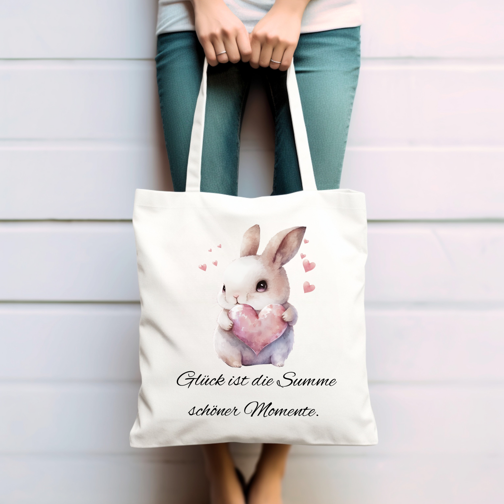 Häschen, Glück ist die Summe schöner Momente - Baumwolltasche