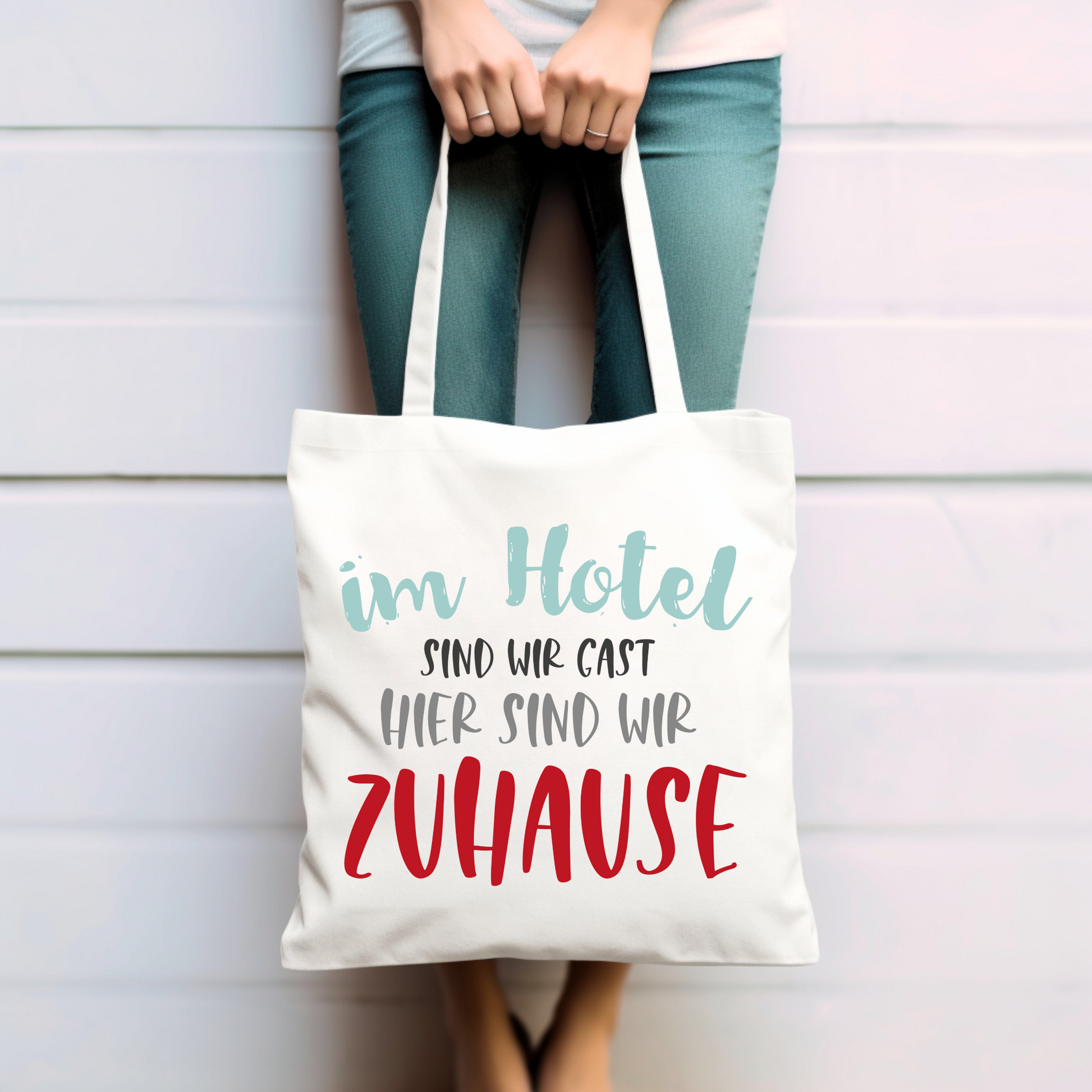 Im Hotel sind wir Gast hier sind wir zuhause - Baumwolltasche