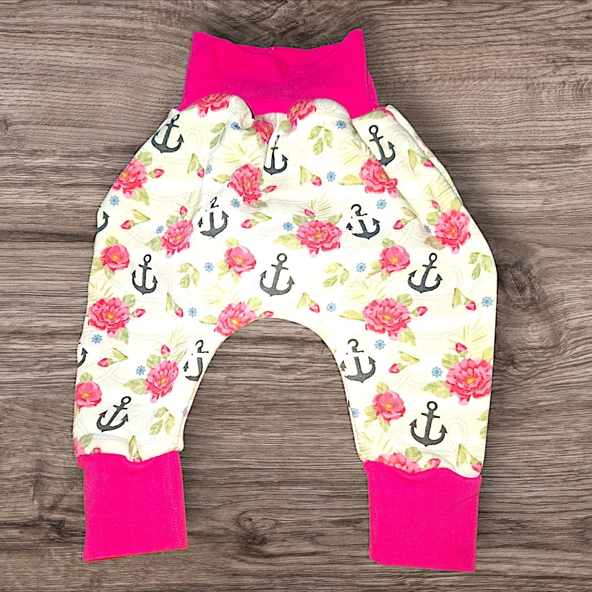 Größe 74/80 Pumphose aus Alpenfleece, maritim, Anker, Rosen