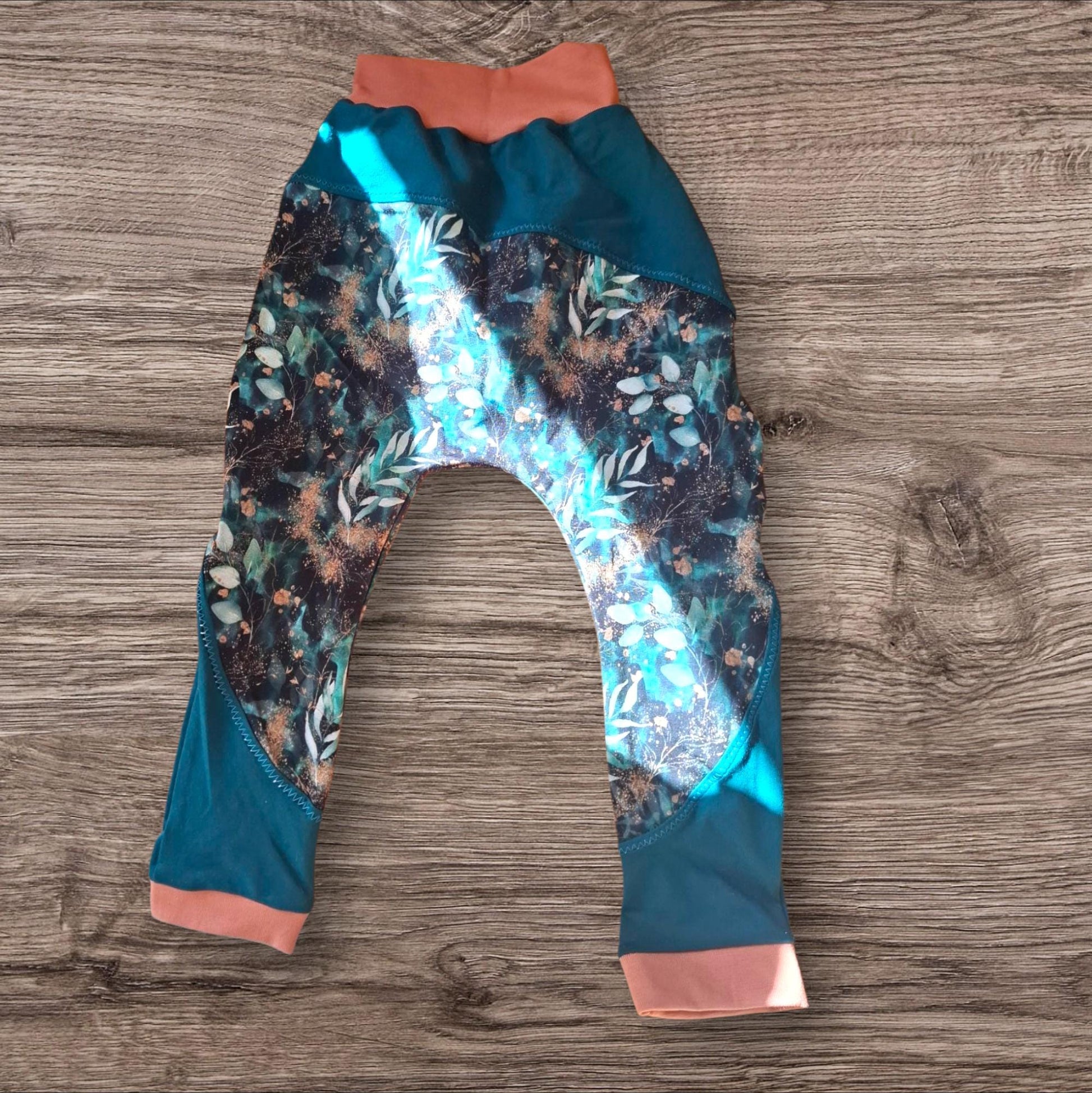 Größe 104/110 Pumphose, Jersey,petrol, gold, braun, Eukalyptus Blätter